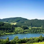 The 1-room Neue Maisonette-Wohnung Mit See-& Bergblick, Sauna is a 10-minute ride from Ruhrquelle ski resort and boasts spa facilities such as a sauna. Located within a 10-minute drive of Hillekopf, the apartment overlooks the lake.